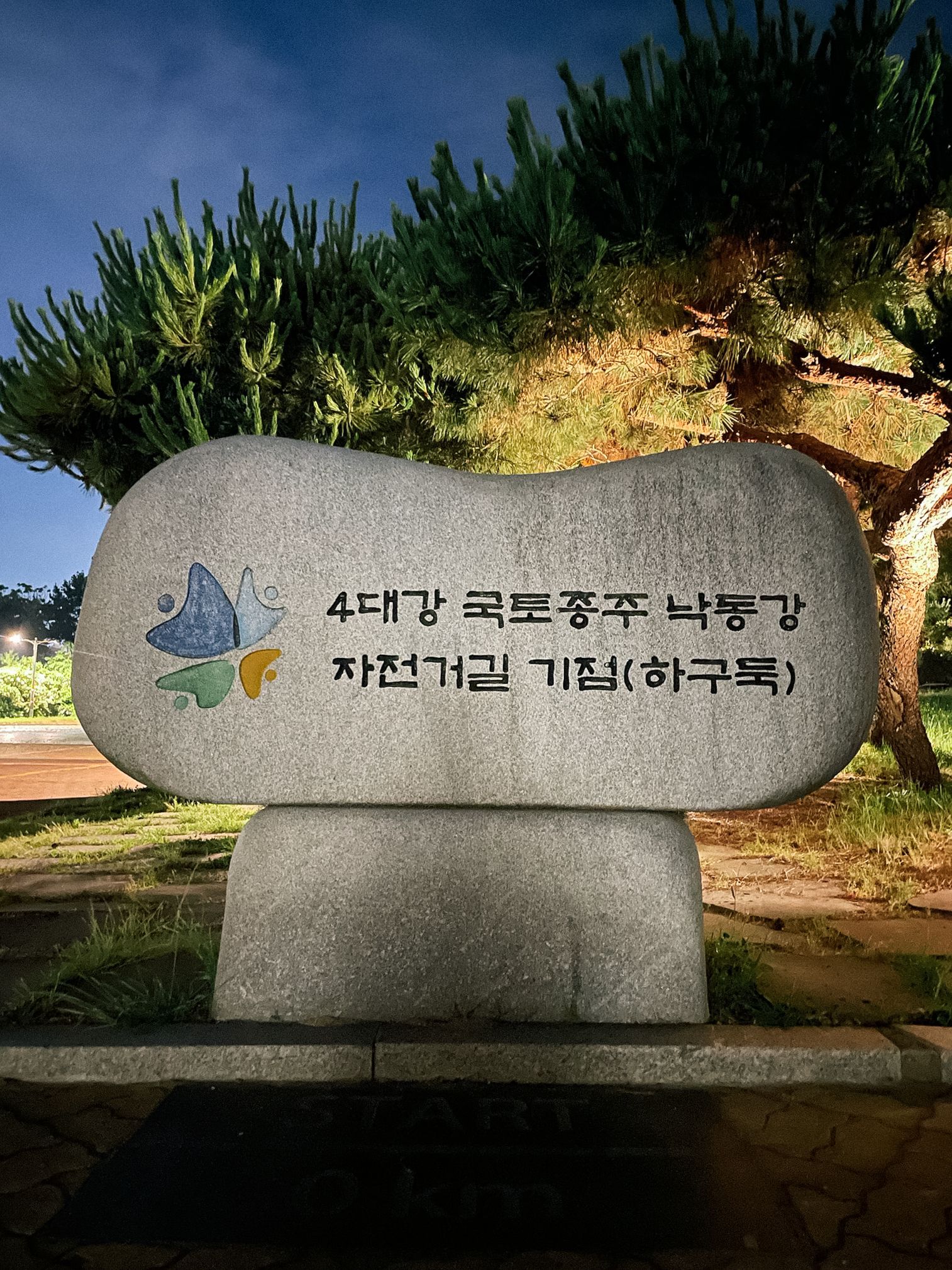 3박 4일 간의 국토종주가 끝나는 순간이었다. 물론 낙동강 하굿둑을 찍고도 숙소까지 10km를 더 가야 했고, 국토종주를 왕복으로 계획했기 때문에 이후로 일주일은 더 밖에 있었지만, 약 580km를 주파했다는 걸 눈으로 확인할 수 있는 유일한 순간이었던 것 같다. 우리는 한동안 사진을 찍은 후 다시 출발하여 숙소로 향했다.
